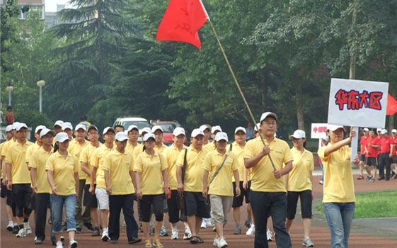 人力资源部刘斌主持了此次运动会,首先他宣布了新稀宝股份2011年夏季运动会开幕,伴随着节奏欢快的运动员进行曲,各个大区的运动员方阵先后入场。响亮的口号,整齐的步伐,灿烂的笑容,充分体现出新稀宝人健康向上,士气昂扬的精神风貌。